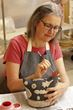 My love of clay began at the age of 8 with the encouragement of a next-door neighbor potter. In high school, I learned to throw on the potter’s wheel and mix glazes; I bought my own kickwheel with money earned cleaning houses. In my early 20s, graphic design took my attention and ceramics were forgotten until I took a class at Palo Alto Art Center some twenty years later. This was followed by a workshop in 1998 with Coeleen Kiebert, who fused artmaking and ceramics with the psychology of the creative individual. For many years I took classes from Kiebert and early on was invited to teach her approach, while at the same time pursuing an academic art education in art history, ceramics, drawing, printmaking and foundry work at Foothill College, San Jose State University, and San Francisco State University through the first year of graduate study in ceramics. I taught at a number of California venues and in my own studio, while participating in regional shows. In 2006, I moved to the Portland area, where I established Clay Circle Studio and continue to show and teach. I show my work at Hanson Howard Gallery in Ashland, Imprint Gallery in Cannon Beach and Row Boat Gallery in Pacific City, and at other venues and exhibitions in the Pacific Northwest and beyond. In 2013, I was featured on Oregon Public Broadcasting’s “Oregon Art Beat”.
