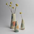 After many years as a mosaic artist using commercial tile, I briefly worked at a handmade tile studio in Ashland, OR learning to create handmade tiles for public mosaic art. This led me to play more with clay and carving, and eventually into where I am today - making one-of-a-kind functional dishware and whimsical sculptures.
