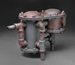 While the clay prefers to relax in elegant, organic shapes I challenge it to take the shape of something it doesn’t want to be. Rigidly straight. Machined. As though the piece was cobbled from spare parts found on a boilermaker's workbench. Held together with nuts and bolts.