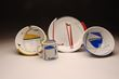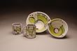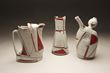Jims’ recent functional work explores the vessel as a painting in the round with the form becoming a sculpted 3 dimensional canvas. A variety of playful line drawings, geometric shapes, patterns and vivid colors also reference the visual environments of a mid century design style and painters such as Mondrian, Klee, Miro and Kandinski.